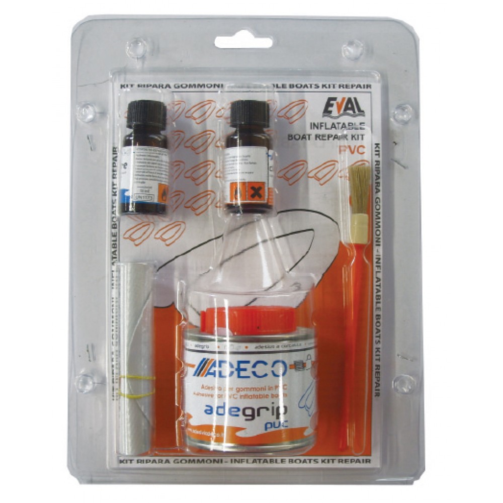 Περιέχει μια κόλλα 125 ml, ένα καταλύτη 10 ml, ένα καθαριστικό 10 ml, ένα πινέλο, ένα ύφασμα PVC και