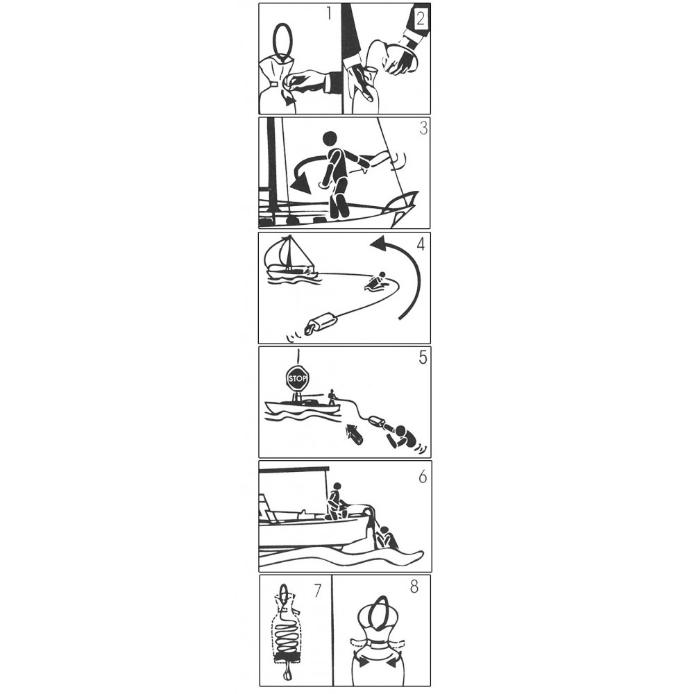 Σχοινί μήκους 20m επιτρέπει την ανάσυρση ανθρώπου από τη θάλασσα με ακρίβεια και ταχύτητα. Το σχοινί είναι πλεκτό, πολυαιθυλενίου, επιπλέον, διαμέτρου 6mm και υψηλής αντοχής. Και στα δυο άκρα του υπάρχουν θηλιές για διευκόλυνση της λαβής τόσο από το θύμα όσο και από το διασώστη. Θήκη από ανθεκτικό PVC με προστασία UV, με επαυξημένη πλευστότητα. Το προϊόν διατίθεται και με αντανακλαστική ταινία SOLAS.